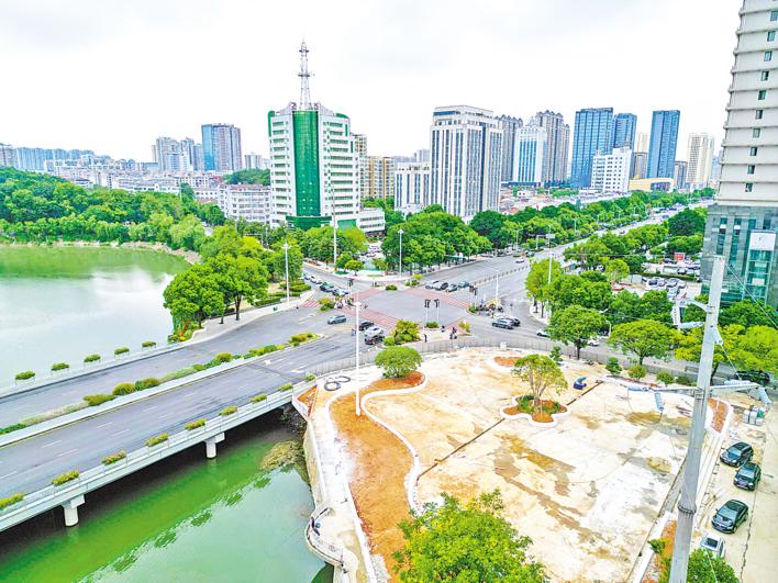 位于咸寧大道丹桂大廈旁的口袋公園初現雛形。 (湖北日報通訊員 張仰強 攝)