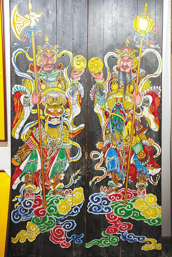 木質(zhì)大門經(jīng)過(guò)修復(fù)后,門神栩栩如生。 (受訪者提供)