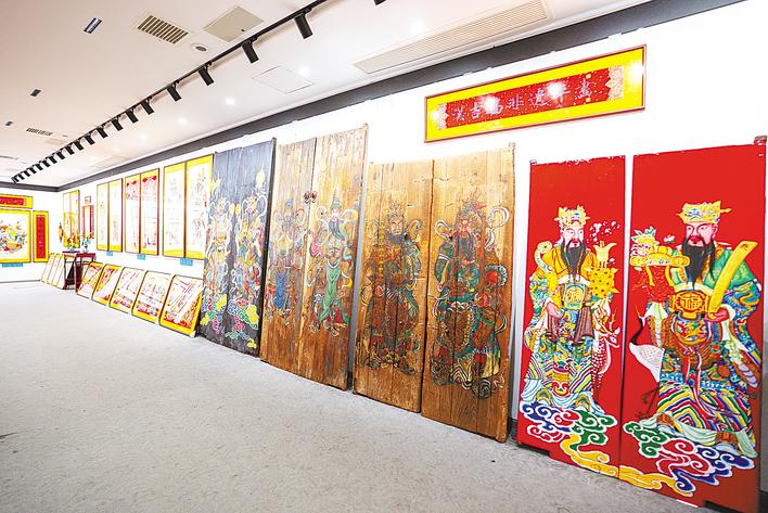漢吉福畫室中陳列著多幅已修復(fù)好的門神年畫。 (受訪者提供)