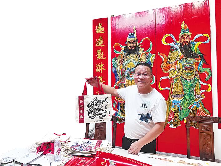 “年輕人不是不喜歡傳統(tǒng),而是需要符合當(dāng)代審美和傳播方式的文化產(chǎn)品。”許華波強(qiáng)調(diào)。如今漢吉福團(tuán)隊(duì)平均年齡不到30歲,他們以創(chuàng)新思維打破年畫僅在春節(jié)銷售的局限,開(kāi)發(fā)出合體貼字、門神帆布包、發(fā)財(cái)文創(chuàng)扇等衍生產(chǎn)品,并針對(duì)城市住宅單門結(jié)構(gòu)推出專用年畫,進(jìn)一步拓寬使用場(chǎng)景與消費(fèi)人群。目前,他們通過(guò)抖音運(yùn)營(yíng)十余個(gè)賬號(hào),日均發(fā)貨超千單,產(chǎn)品銷往山東、廣東、河南等地,甚至通過(guò)外貿(mào)公司間接出口至海外市場(chǎng),成為華人家庭春節(jié)時(shí)的“鄉(xiāng)愁寄托”。