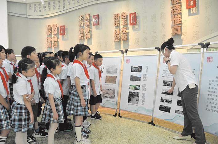 今年,“大江東去——武漢防汛抗洪展”巡展走進市委黨校、武漢革命博物館,還走進武漢多所小學校園。20余塊圖文并茂的展板,配合專業講解員的生動講述,為參觀者再現了武漢人民與洪水抗爭的英雄史詩。