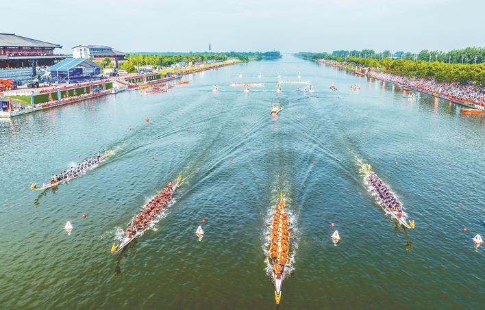 庫姆巴特·2025年中國龍舟公開賽(湖北·仙桃站)在排湖旅游度假區(qū)龍舟公園精彩開賽,673名運動員飛槳逐浪、同臺競技。(吳晴霄 攝)