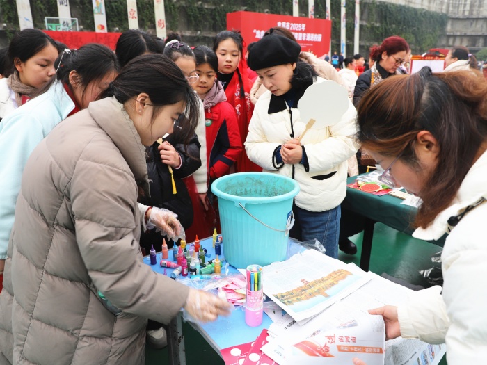 展演結束后,非遺進校園互動市集環節熱鬧開啟,成為同學們沉浸式體驗傳統文化的實踐課堂。現場主要圍繞“三峽戲韻·非遺流光”“匠心戲趣·少年綻彩”“梨園戲藝·新苗傳承”三大主題,設置快閃、互動、展示三大區域:邀請京劇藝術家及宜都綁鼓、長陽南曲等非遺傳承人登臺,聯動多所戲曲特色學校開展快閃表演;開設皮影戲、漆扇、篾編等手工體驗區,搭配打卡集章認證活動;設置“戲曲小百科”科普區、少兒戲曲風采展區,以及“梨園春色”等主題打卡背景和“少兒有戲”留言板,全方位擴大學生參與面。