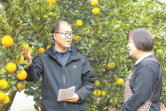 不擅社交的曹立新,卻是全縣橘農最喜親近的貼心人。郭家壩鎮熊家嶺村的種橘大戶熊仁發,園里的九月紅“犯病了”,摘下來的橙子皮上有斑塊,影響賣相。曹立新和他一起會診,終于找到“油胞下陷”的病根,用最省事的方法圓滿解決。十余年間,他累計開展培訓150余場次覆蓋受眾萬余人次,精心培育137人“土專家”隊伍,手把手教技術、傳方法。